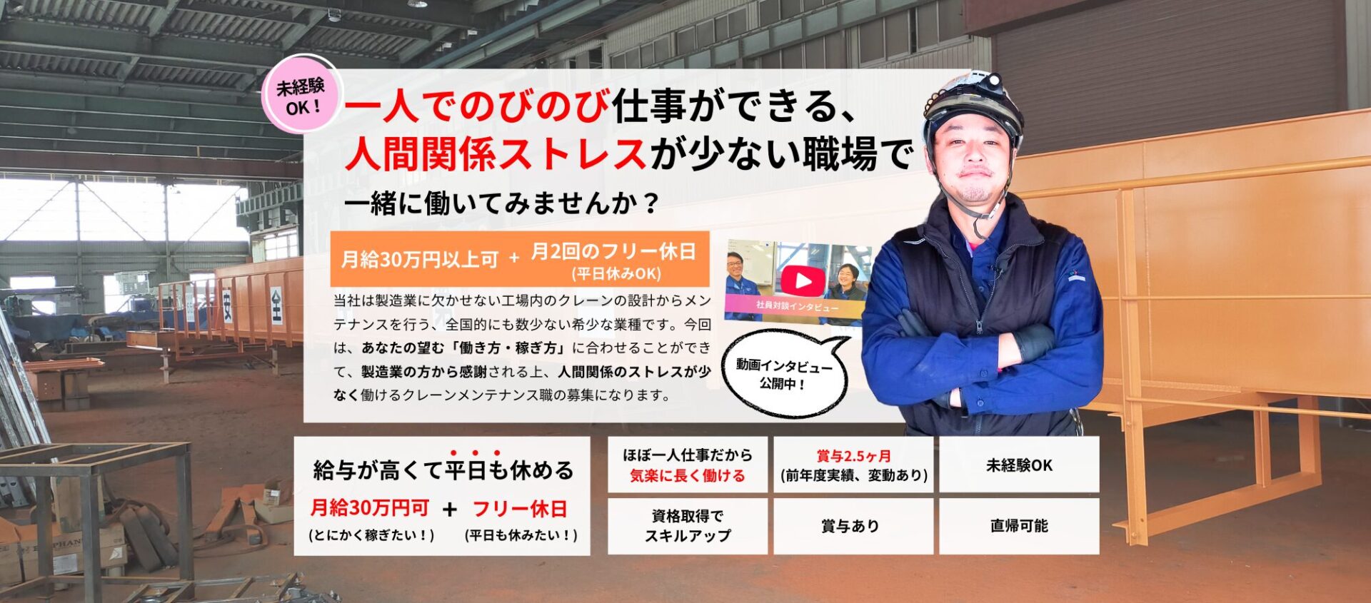 | 職種 | 製造業をメインとしたクレーンメンテナンス職 |